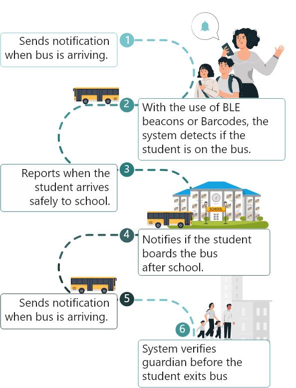 Most importantly, the system verifies whether the person picking up the child is an appointed guardian before the child exits the bus.